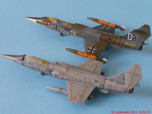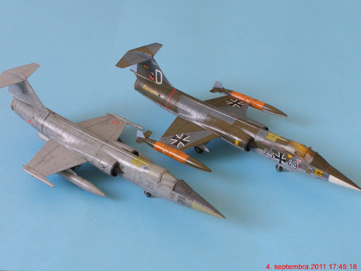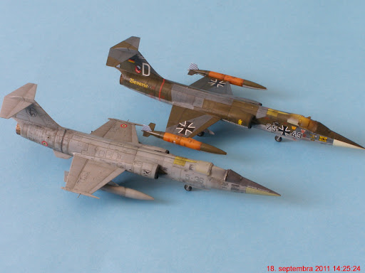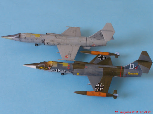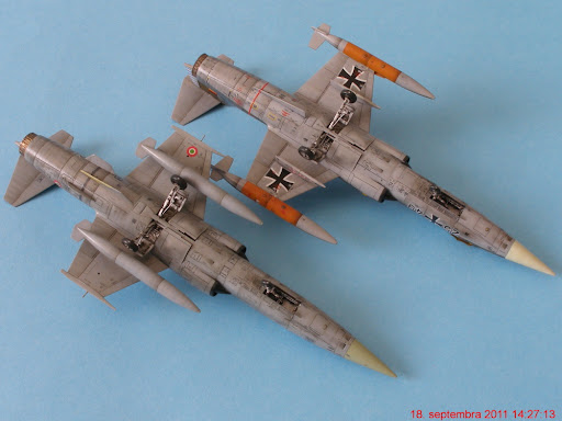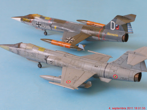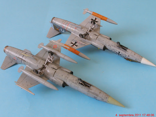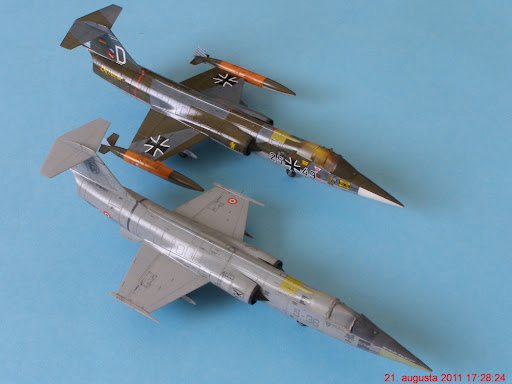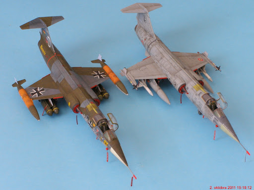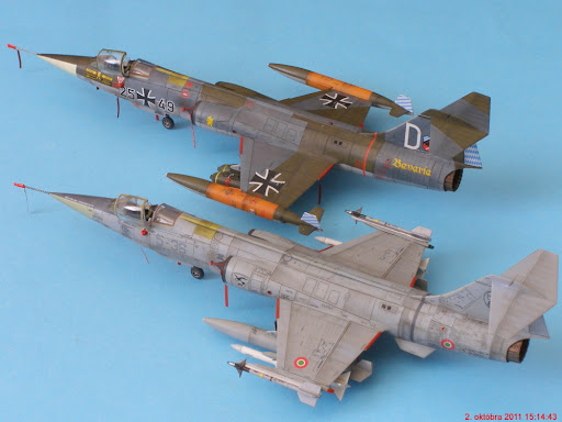 Starfightery sú konečne hotové. Toto sú ich posledné spoločné "štúdiove" fotky po skončení stavby. F-104G skončí v mojej novej vitríne v Bratislave a F-104S ostane vo vitríne Trenčíne :) Samozrejme, ešte ich dám spolu dohromady, keď sa pôjdu prevetráť na 2-3 akcie...