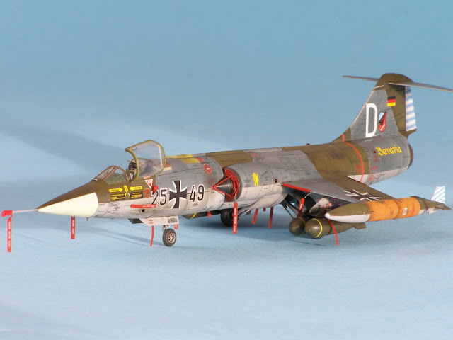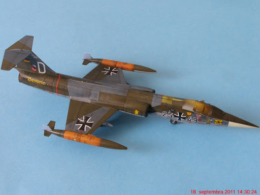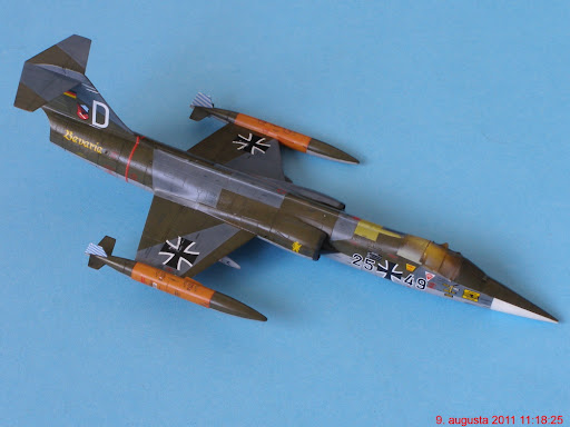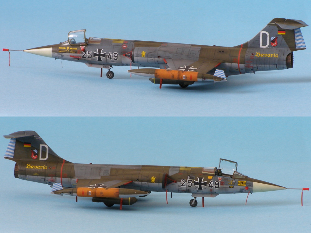 F-104G, 25+49 "Bavaria" slúžil ako stíhací bombardér u jednotky Luftwaffe JaBoG 32. Marking, v ktorom so ho dokončil, je z roku 1980. Presnejšie z doby, kedy sa zúčastnil cvičenia TAM na leteckej základni v Ramsteine. Pri stavbe tohoto starfíka som použil následujúce doplnky: